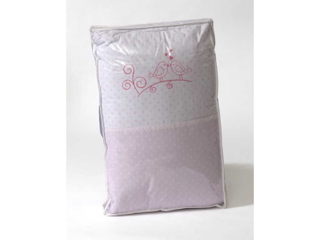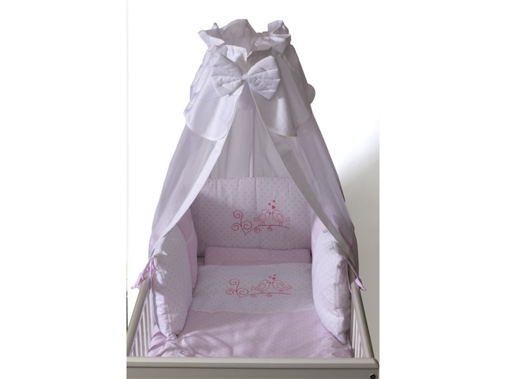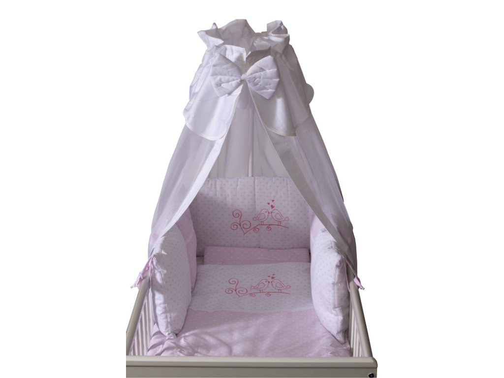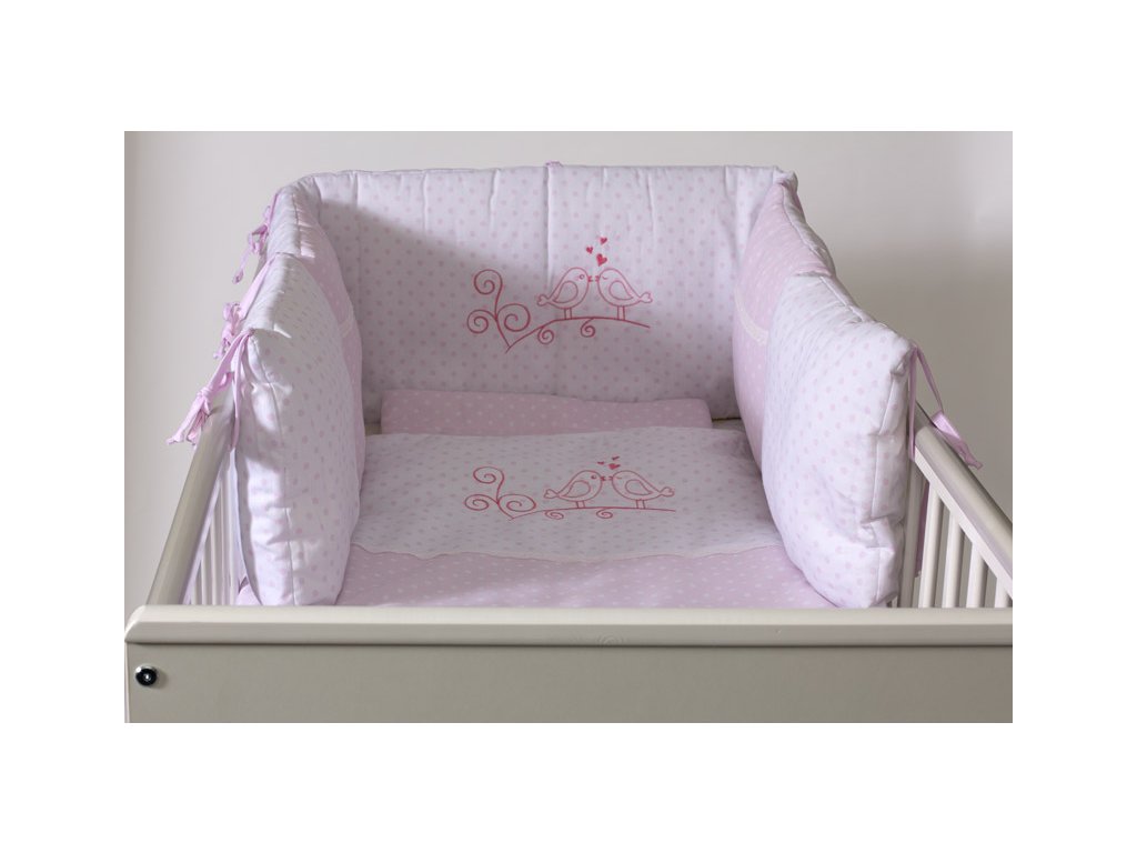 Babybett-Set mit Vogelmotiv, rosa gepunktet