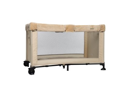 Kompaktes, zuverlässiges Reisebett, ideal für Reisen oder als Laufstall. In der Transporttasche. Bezüge aus Samt. Maße 60 x 120 cm, Regenschirm faltbar.