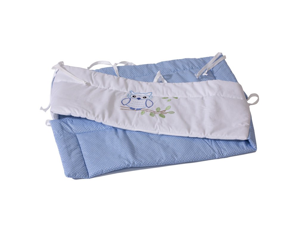 Babybettumrandung Eule blau gepunktet