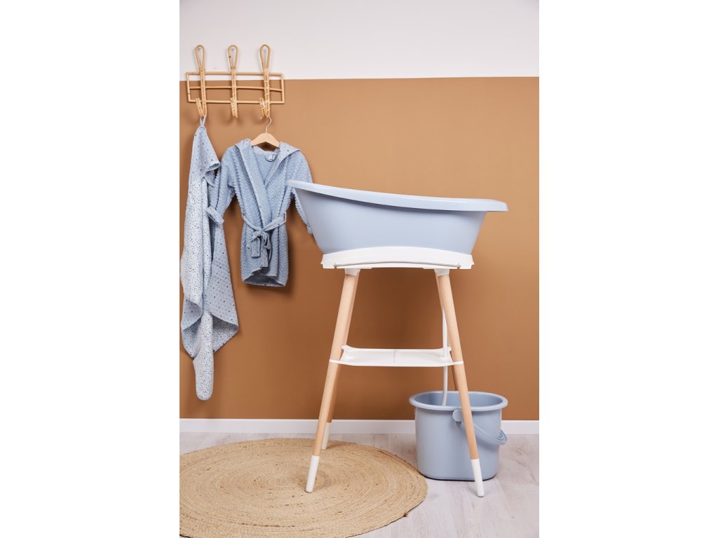 Das Baden Ihres Babys ist ein tägliches Ritual, das Ihnen und Ihrem Kind Freude bereitet. Mit der Babybadewanne auf einem Gestell können Sie direkt im Kinderzimmer spielen und müssen sie nicht mehr herumtragen. Die Badewanne mit Gestell steht so länger im Zimmer und wertet es optisch auf. Die Füße des Gestells aus Kunststoff und Buchenholz bieten optimalen Halt.