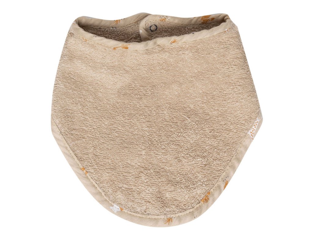 Dieses beigefarbene modische Lätzchen-Bandana aus Baumwollfrottee kann Ihr Kind den ganzen Tag tragen. Es ist besonders praktisch, wenn Sie die Kleidung beim Stillen schützen möchten oder wenn Ihr Baby beim Zahnen vermehrt sabbert. Das Lätzchen ist Öko-Tex zertifiziert und eignet sich hervorragend als originelles Geschenk zur Geburt.