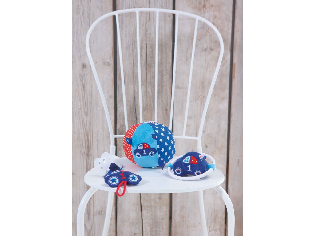 Fröhlicher Plüsch-Knisterballon mit Spielzeugauto-Motiv in schönen Farben aus der Bébé-jou 1-2-3 Designserie. Kuscheltier aus verschiedenfarbigen Textilien. Hilft beim Üben von Tasten, Greifen und Hören, unterstützt das Entdecken. - ab 0 Monaten - Größe ca. 15 cm - rasselt beim Schütteln. Material: 65 % Polyester, 35 % Baumwolle. Waschen: separat bei 30 °C mit nicht bleichendem Waschmittel waschen, nicht bügeln, nicht im Trockner trocknen. Gewicht: 0,080 kg. Maße: Durchmesser – 14 cm.