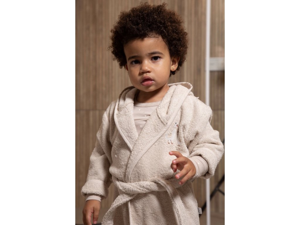 - Der Bademantel wird mit einem Bindeband in der Taille geschlossen