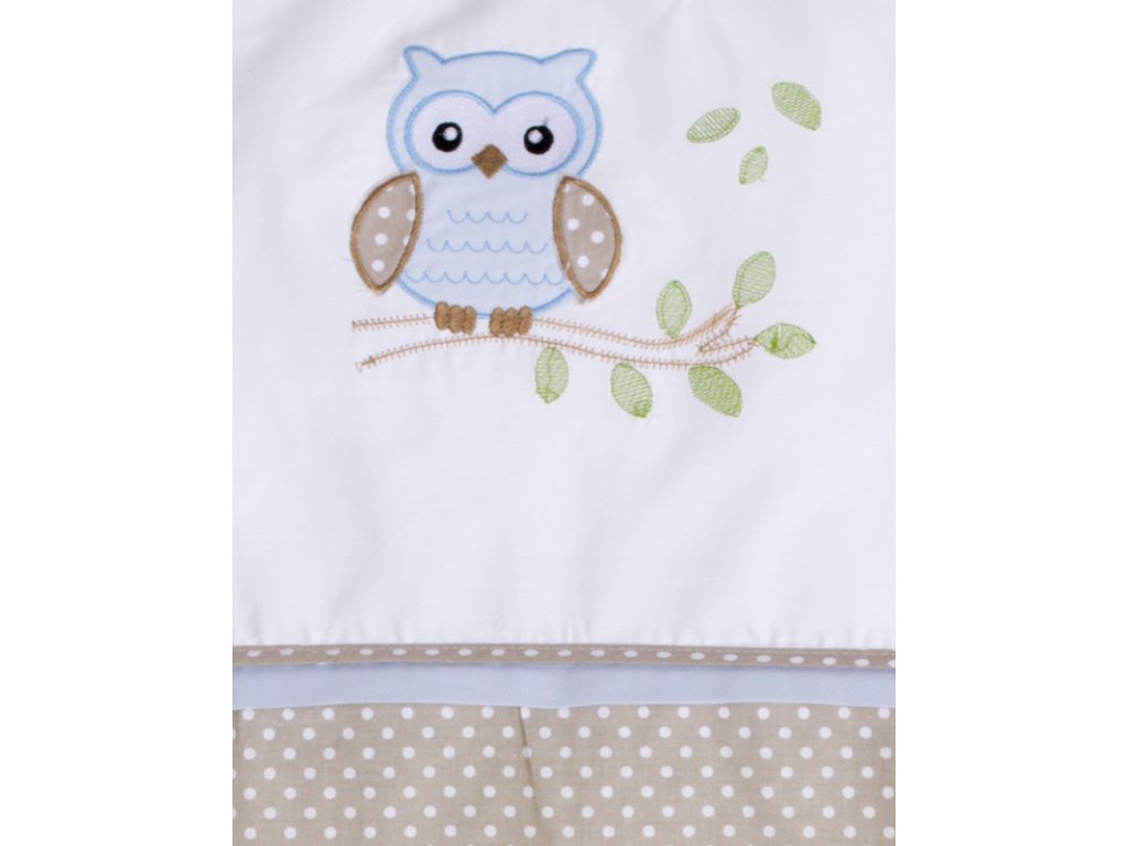 Bettwäsche fürs Kinderbett, blaue Eule, beige Punkte
