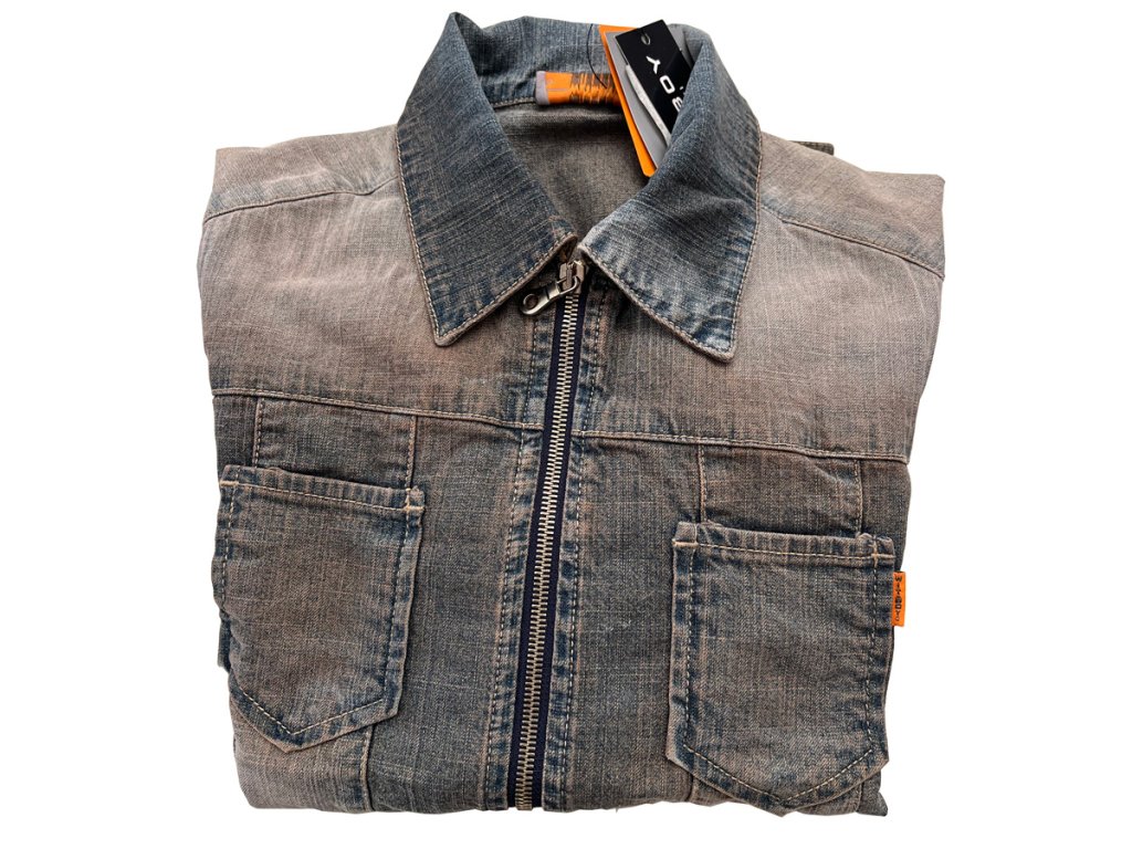 Material: 100 % Baumwolle, weiches Sporcato-Finish, grau mit beige-braunen Nähten