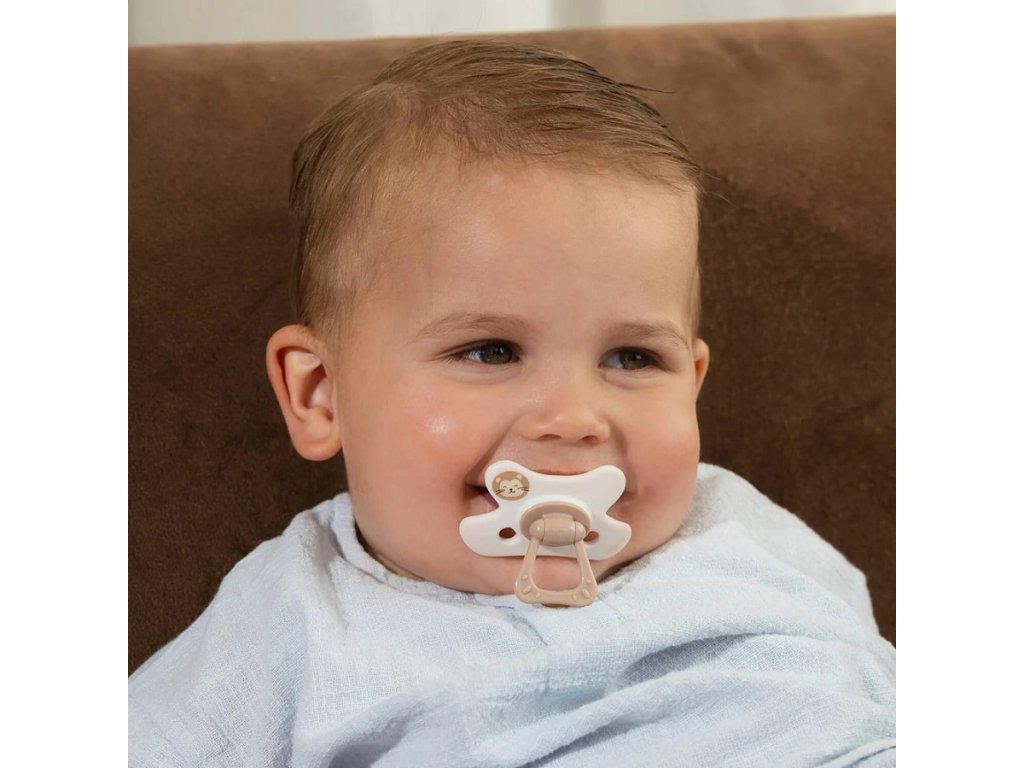 - Der Sauger des Schnullers 12+ besteht aus dickem Silikon, das das Zahnfleisch gut massiert und das Zahnen erleichtert.