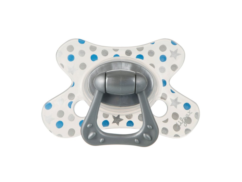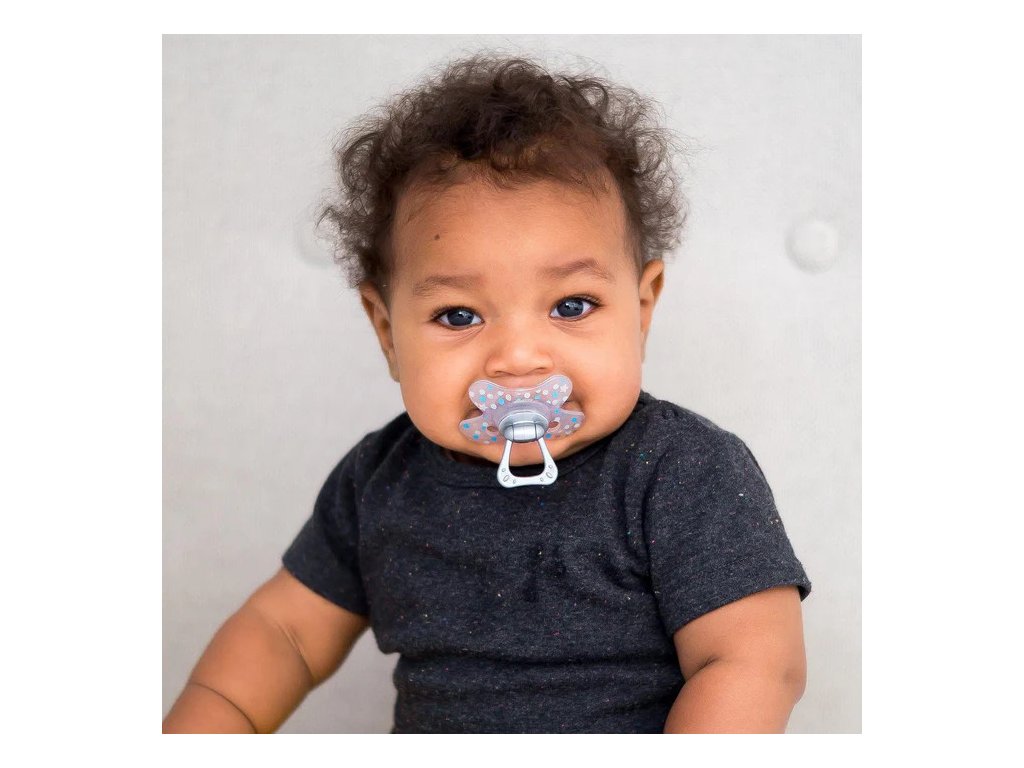 - Der Sauger des 6+ Schnullers besteht aus dickerem Silikon, das das Zahnfleisch besser massiert und widerstandsfähiger gegen Zahnen ist.