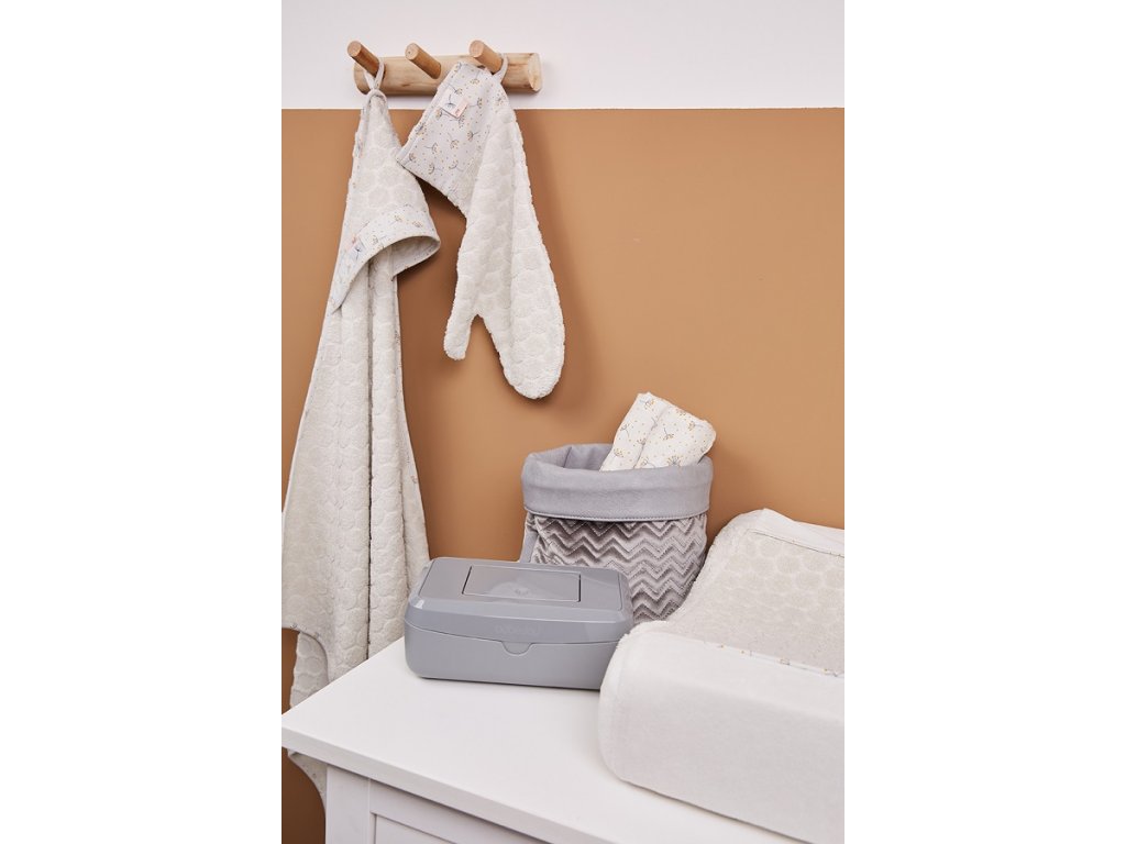 Möchten Sie noch mehr Spaß beim Baden mit Ihrem Kind haben? Probieren Sie das beige Frotteehandtuch in Form eines großen Handschuhs. Hergestellt aus luxuriösem Jacquard-Frottee.