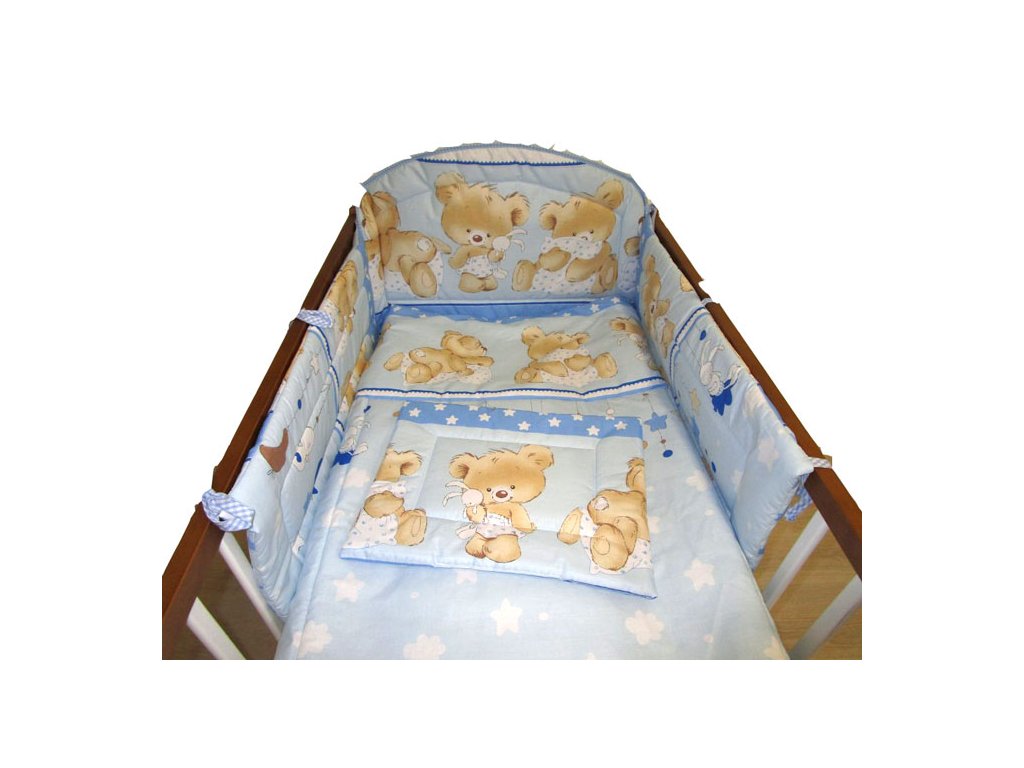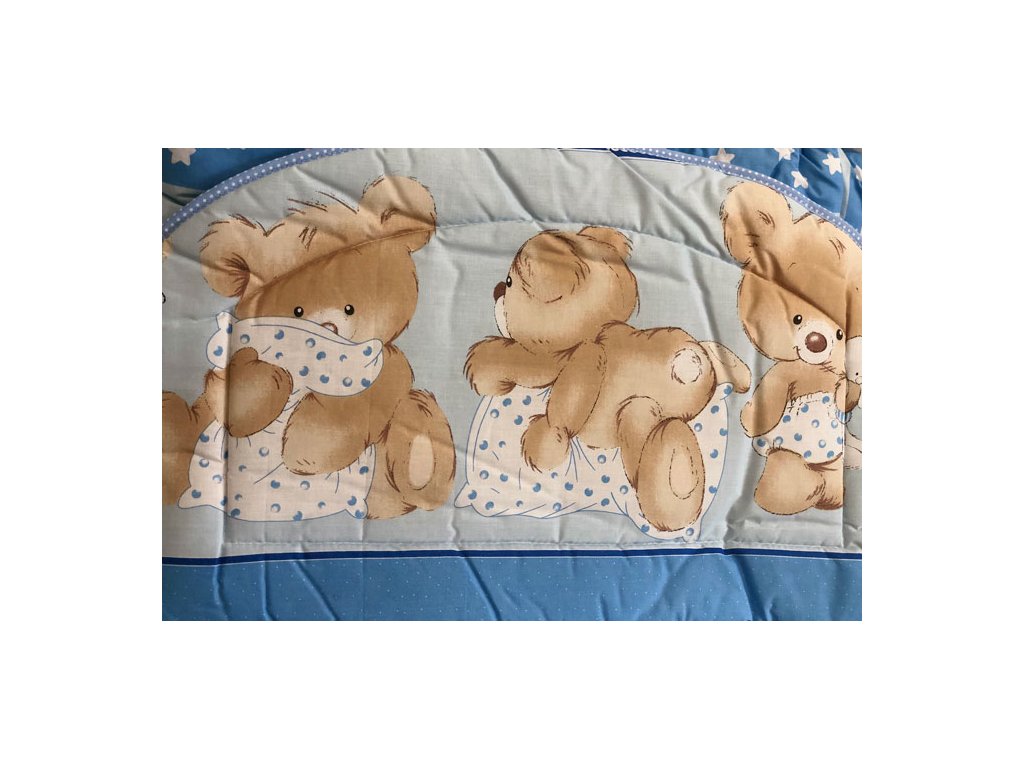 Das Set beinhaltet: ein Kissen (40 x 60 cm), eine Bettdecke (100 x 135 cm) und einen Nestchen (ca. 200 x 25 cm).