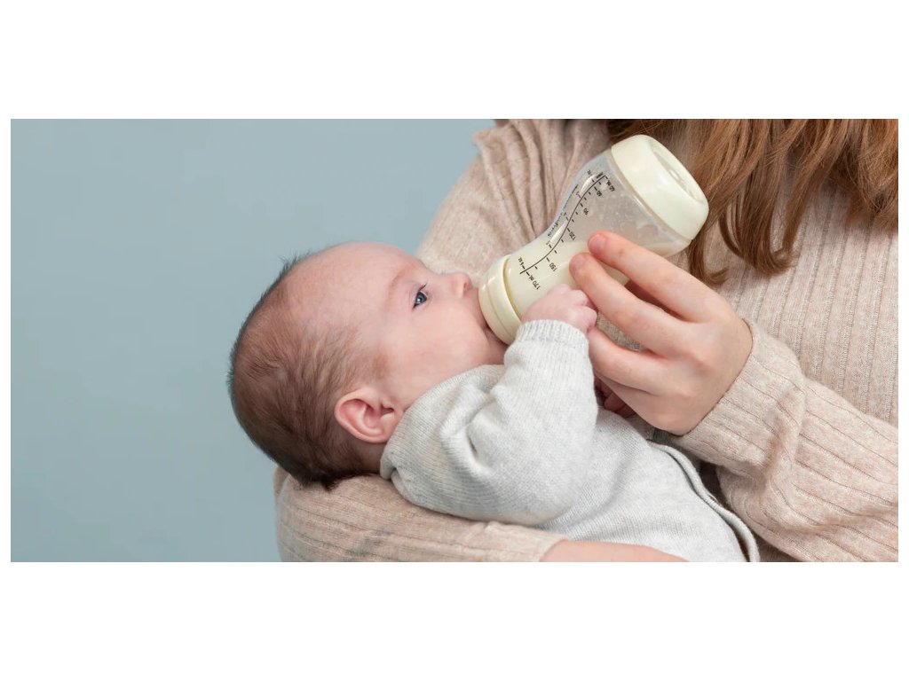 Die ergonomische Form fördert die natürliche Haltung des Babys beim Trinken, ähnlich der Stillposition.