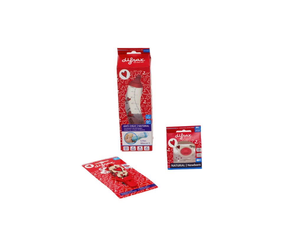 Das Difrax Babyflaschen-, Schnuller- und Clip-Set bildet die Basis der Babyausstattung und ist auch ein ideales Geschenk für werdende Mütter. Anti-Kolik-Flasche