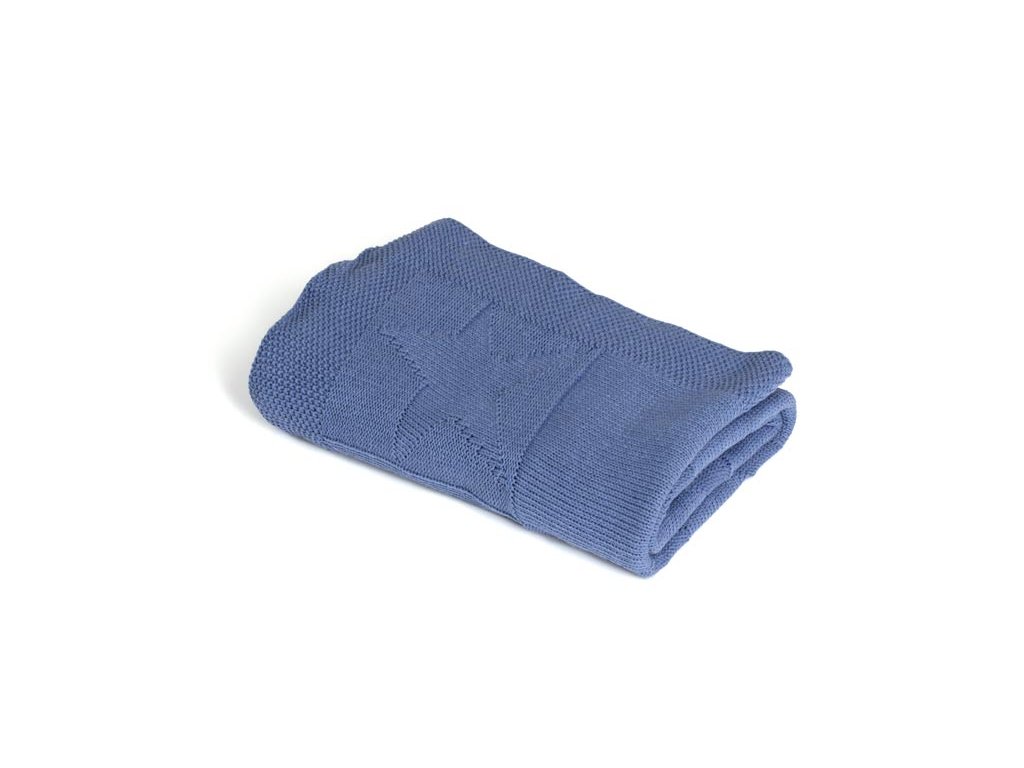 Gestrickte Decke aus Baumwolle, blau, Sterne, Rialto Baby