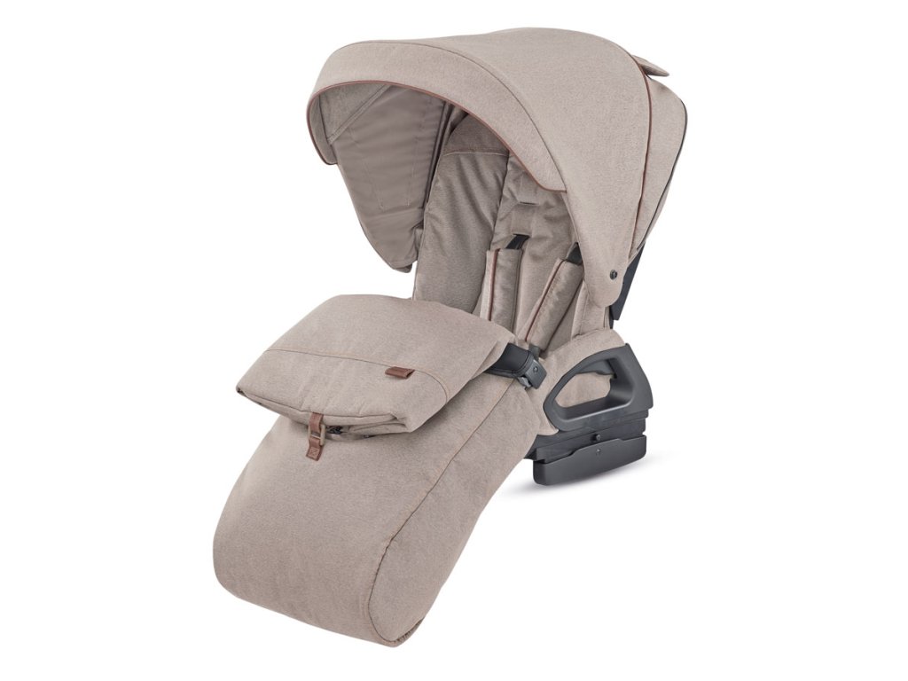 Ersatzbezug für den Sportsitz des Inglesina Quad Kinderwagens in der Farbe Rodeo Sand mit Bezug aus cognacfarbenem Kunstleder. Passend für alle Sportsitze Sofia/Quad/Vittoria.