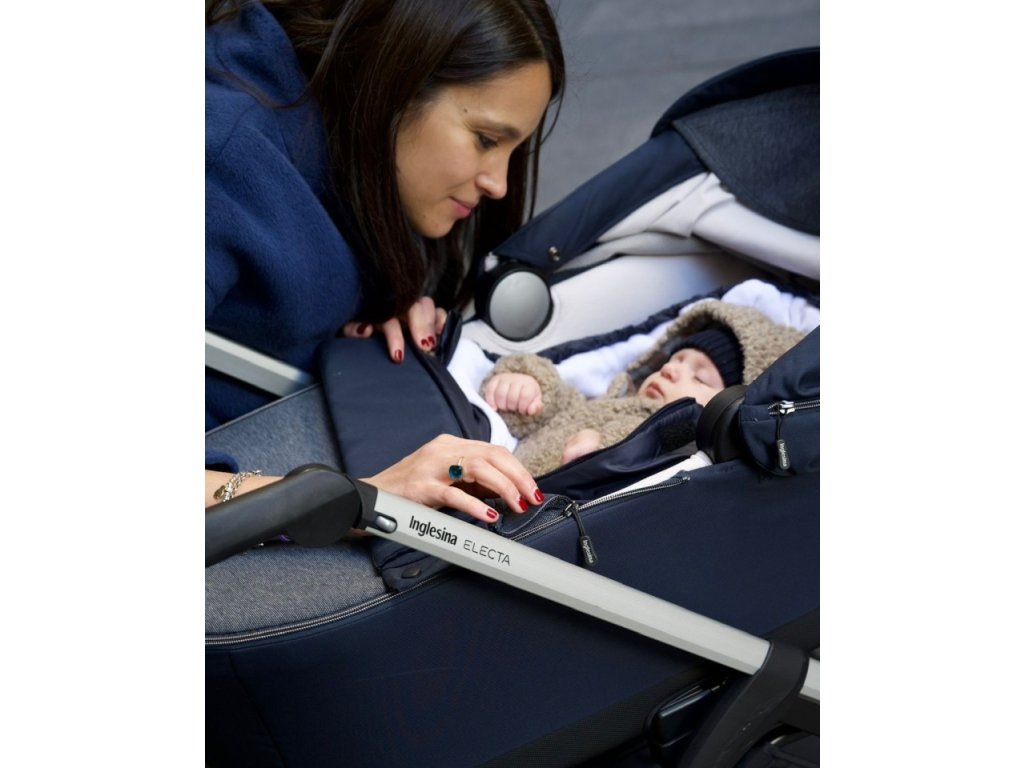 Das Anti-Rutsch-Material am Heck hält die richtige Position, während die 5-Punkt-Gurtlöcher für maximalen Bedienkomfort sorgen. Passend für alle Inglesina Kinderwagen und die meisten anderen Marken.