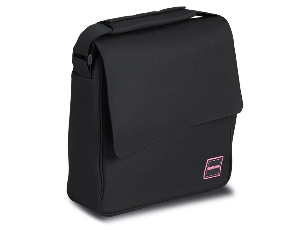 - Eine farblich abgestimmte Tasche mit Wickelauflage, Schultergurt und Tragegriff.