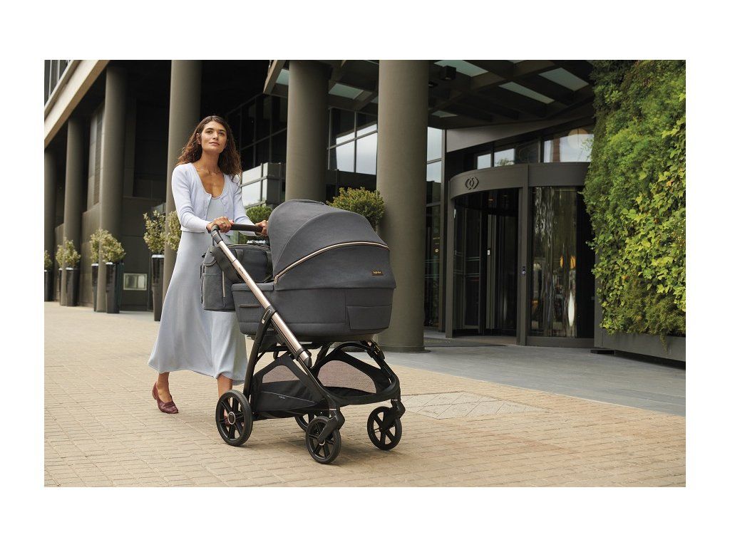 Multifunktionale Tasche mit großen Fächern für alles, was Eltern unterwegs mit ihrem Baby brauchen. Ausgestattet mit einer Wickelunterlage und einer herausnehmbaren, geräumigen Tasche – ideal für Kurztrips.