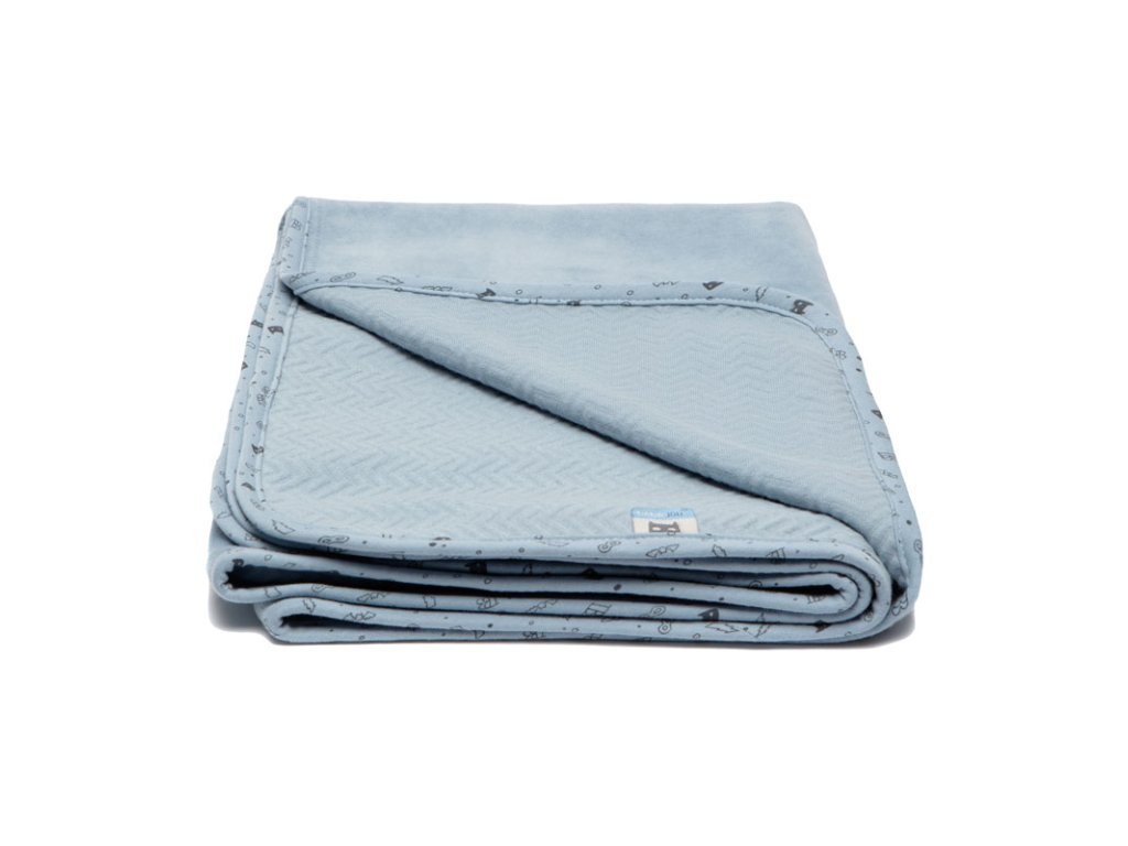 Eine wunderschöne, weiche Bébé-jou Babydecke aus der Simply Fabulous Hero Kollektion (100 x 150 cm) hält Ihr Kleines im Schlaf warm. Die Decke hat auf der einen Seite ein gewebtes Muster und auf der anderen Seite einfarbigen Mikroplüsch.