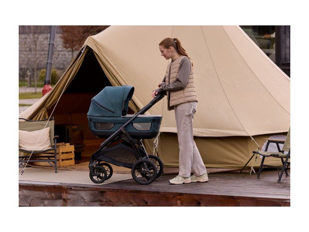 Der Aptica XT 2026 Kombi-Kinderwagen besteht aus: einer geräumigen, tiefen XXL-Babywanne mit 5 Sichtfenstern, einer Welcome Pad™ Matratze, einem Stand Up™ Gestell, einem All Season Sportsitz mit Verdeck, einem Korb, einem Getränkehalter und dem neuen, leichten und anpassungsfähigen Aptica XT Gestell.