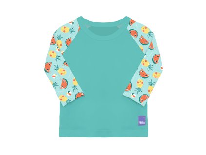 Perfekter UV 40+ Schutz für kleine Seemänner und Entdecker! Schützen Sie die Haut Ihres Kindes mit unserem Kinder Badeshirt in dem Muster Tropical mit UV Filter. Dieses Shirt in der Größe 7-9 Kg, ergänzt perfekt Badeanzüge von Bambino Mio.