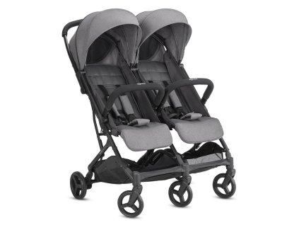 Leichter und kompakter Kinderwagen für Zwillinge in Grau. Sie können ihn gut für Geschwister in ähnlichem Alter verwenden. Geeignet schon von Geburt an.