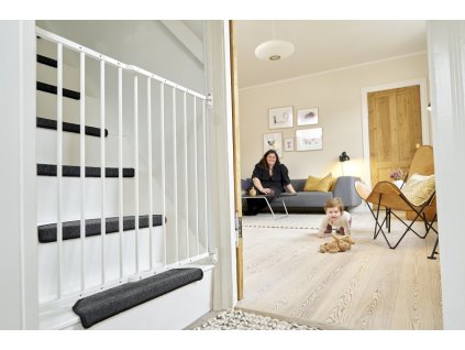 Einschraubbares Schutzgitter von BabyDan, dem weltweiten Sicherheitsexperten, in weiß lackiert. Passt perfekt in schmale Öffnungen von 56,5 cm bis 81,5 cm. Länge verstellbar.