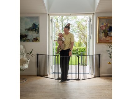 Das schwarze BabyDan Carl Wide Raumteiler für den Außen- und Innenbereich bietet guten Schutz im Treppenhausbereich oder vor größeren, doppelflügeligen Türen.