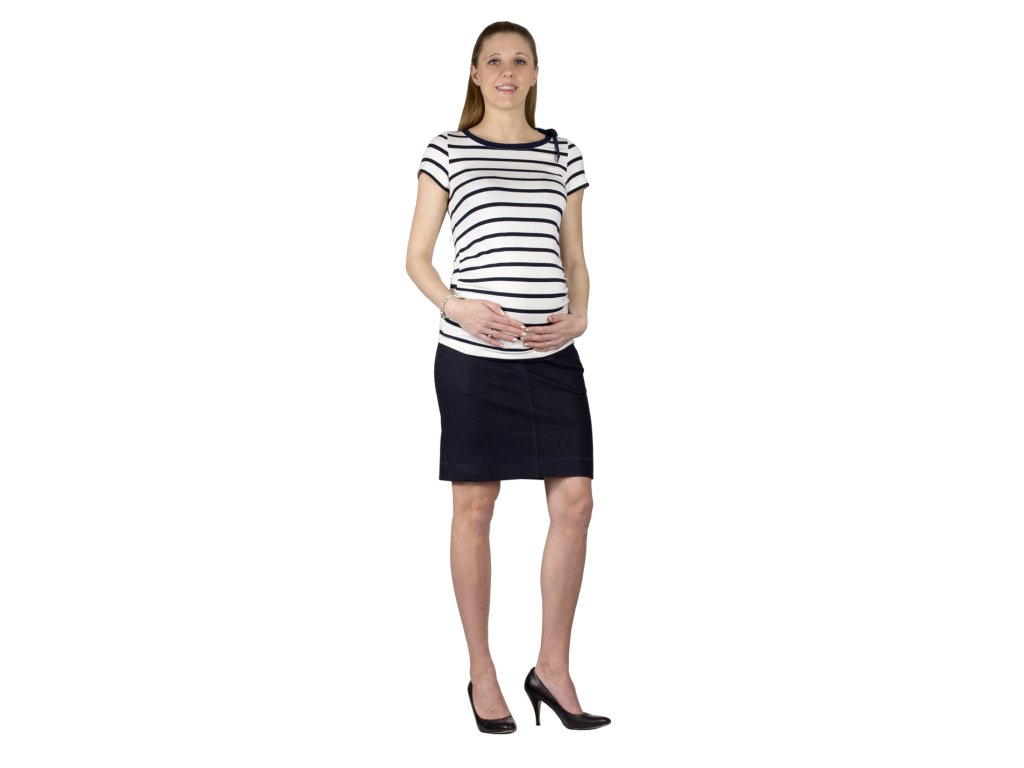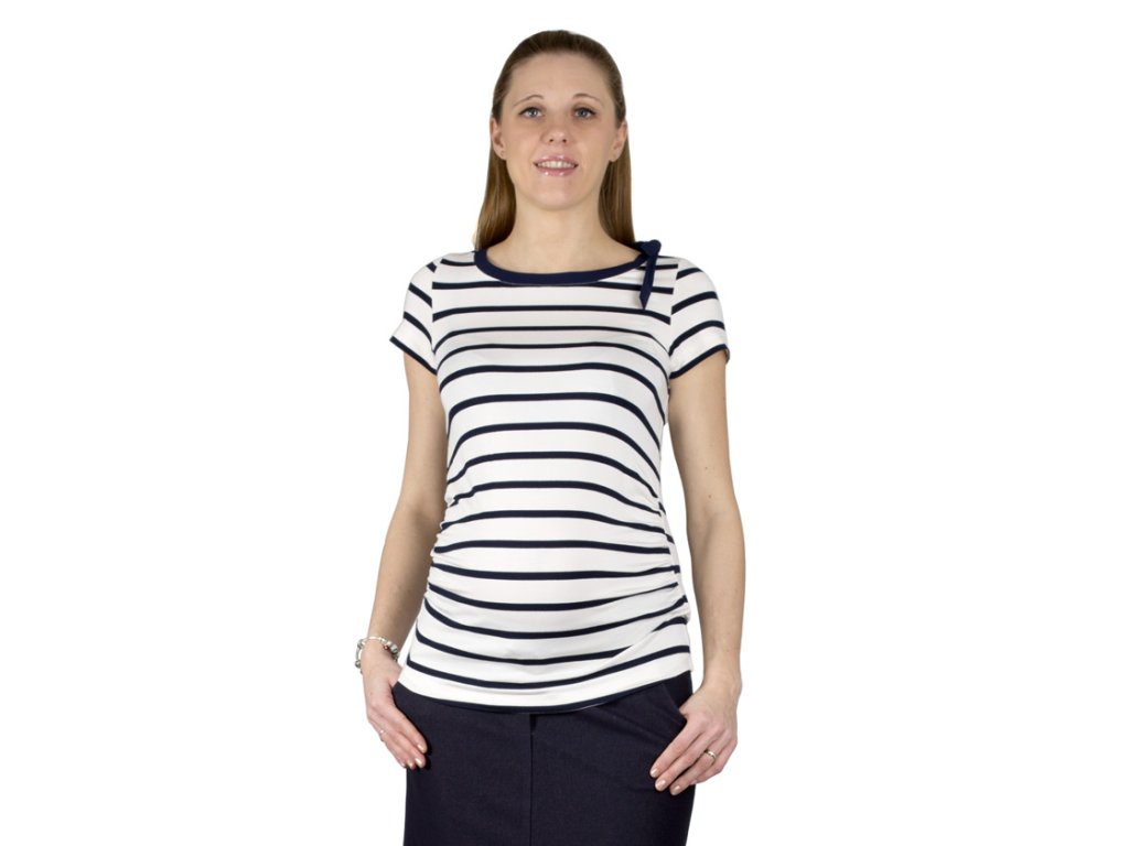 Ein sehr beliebtes Umstands-T-Shirt, das in keiner Damengarderobe fehlen darf. Dank der seitlichen Raffungen passt es sich der Figur und dem wachsenden Bauch an.