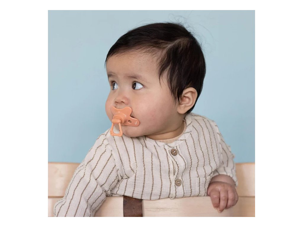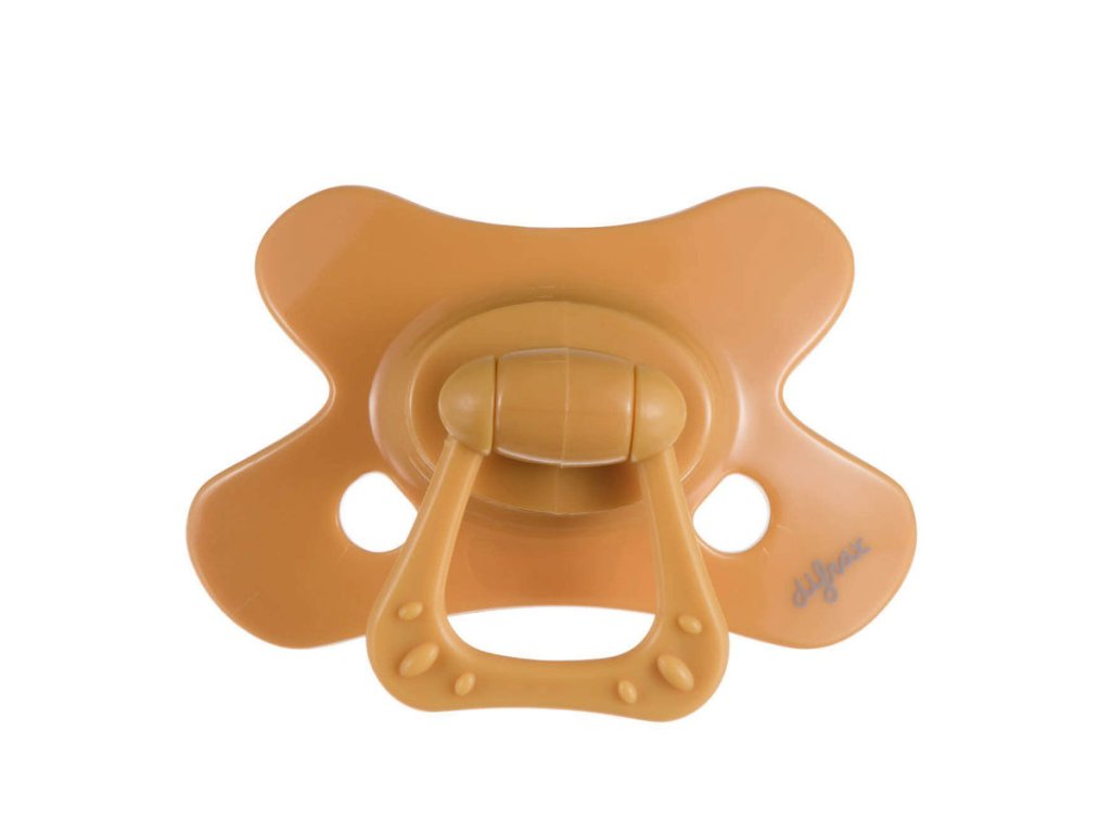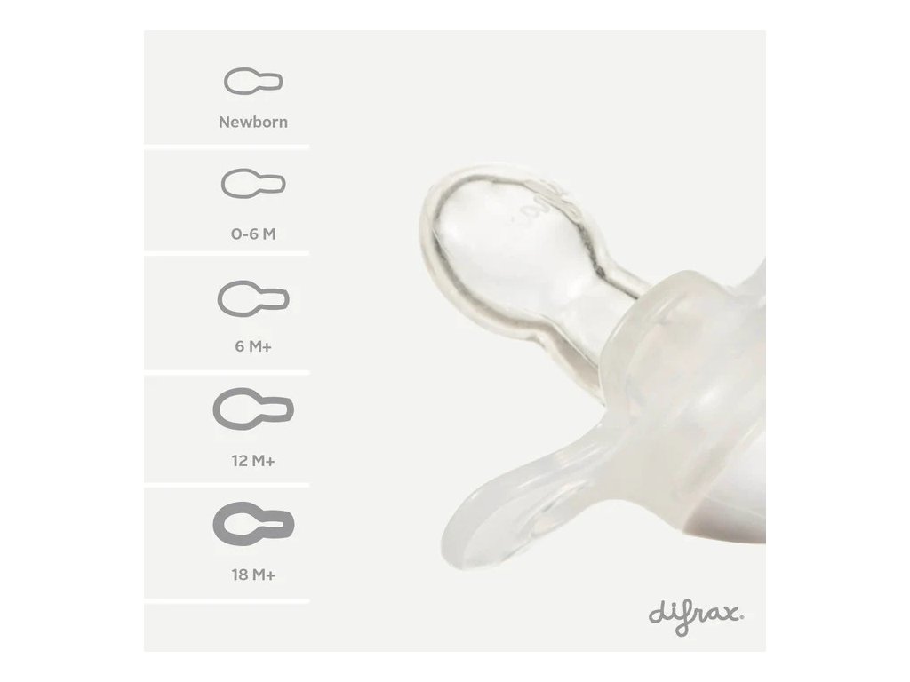 Der einzigartige Difrax-Schnuller hat eine schmetterlingsförmige Scheibe, die dafür sorgt, dass sich der Schnuller perfekt an die Gesichtsform Ihres Babys anpasst. Die Aussparung in der Scheibe ermöglicht es dem Baby, frei durch die Nase zu atmen. Zwei zusätzliche Löcher sorgen für einen ausreichenden Luftdurchlass und verringern die Möglichkeit, die Haut des Babys zu reizen. Der Schnuller vermittelt dem Baby ein Gefühl von Komfort, Trost und Entspannung. Die Schnuller von Difrax sind ebenfalls in verschiedenen beliebten Designs und Farben erhältlich.