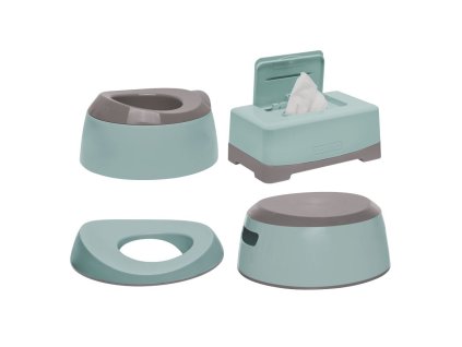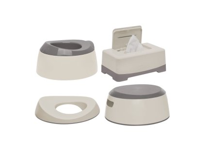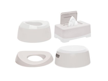 Das vierteilige Luma Toilettentrainingsset beinhaltet ein Töpfchen, einen Kinder-Toilettensitz, eine rutschfeste Fußstütze und eine Feuchttücherbox. Rabattierter Preis.