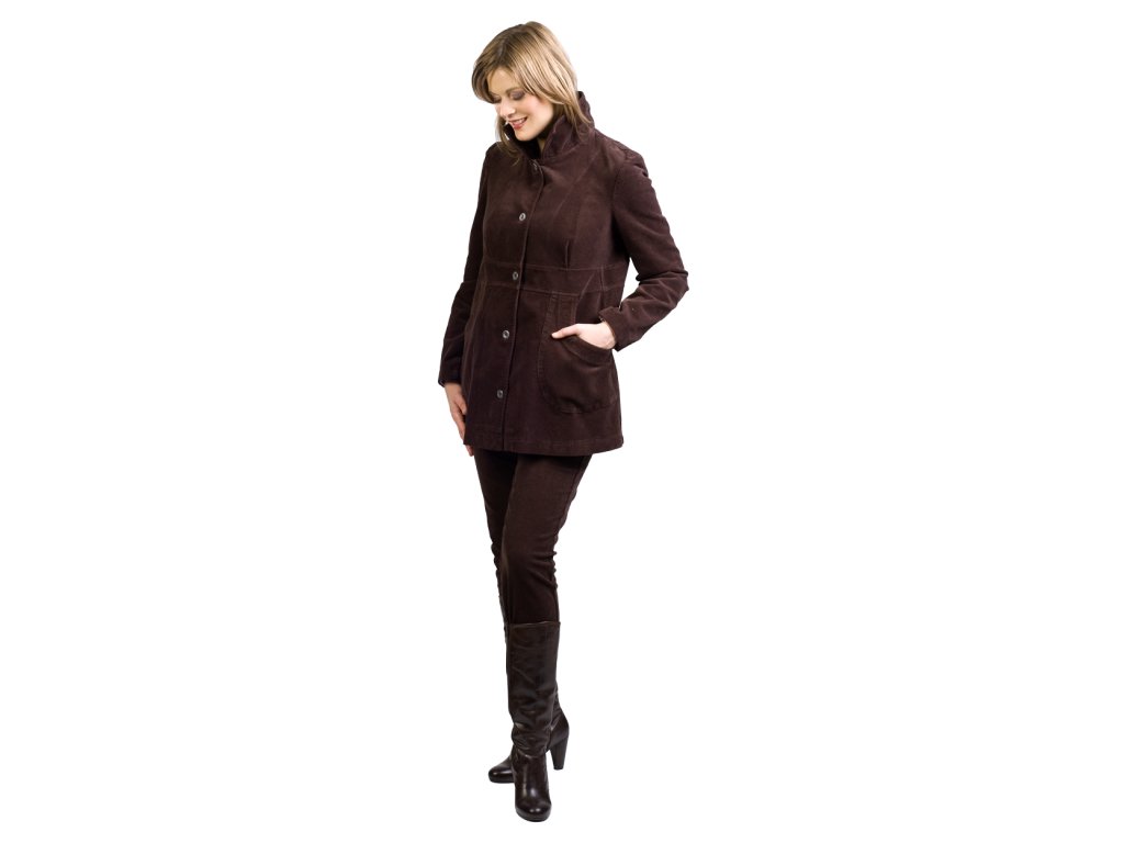 Leichter Umstandsmantel in A-Linie mit Stehkragen und Knopfleiste. Geräumige, aufgesetzte Taschen befinden sich vorne. Gefertigt aus weichem, braunem Cord mit feinen Rippbündchen. Der Mantel ist locker geschnitten und ungefüttert. Ideal für kühle Herbsttage.