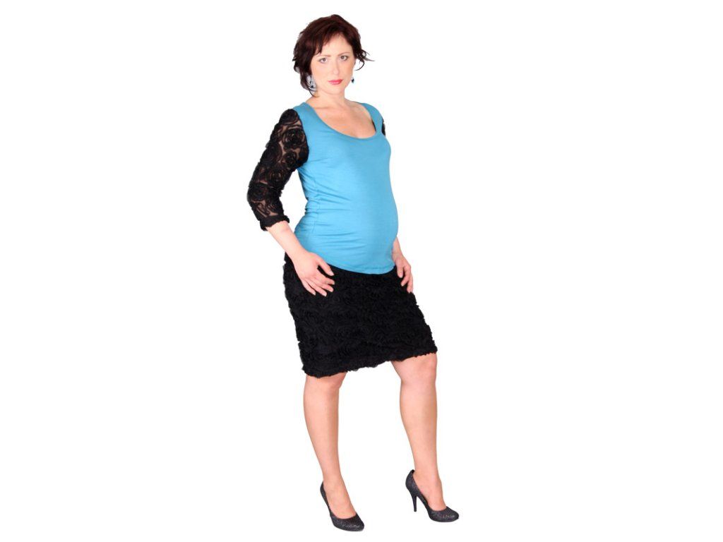 T-Shirt mit U-Ausschnitt und 3/4-Ärmeln aus spektakulärem Tüll. Es hat einen A-Linien-Schnitt mit leicht verlängerter Vorderseite. Das Material besteht aus sehr angenehmer Viskose mit einem Lycra-Anteil und ist mit aufwendigen Tüllapplikationen bestickt.