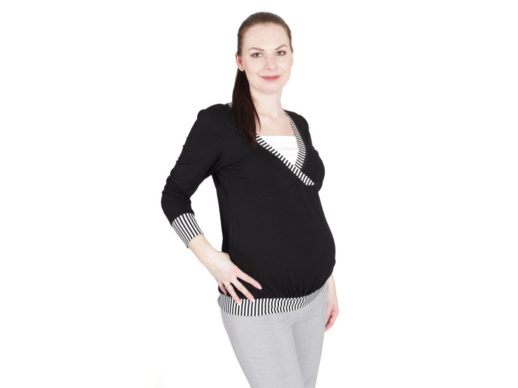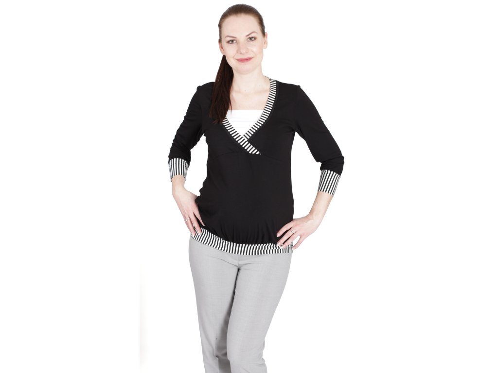 Sehr schönes und bequemes Umstands- und Stillshirt mit 3/4-Ärmeln. Verziert mit einem kontrastierenden Zierstreifen an Ausschnitt, Ärmeln und Saum.