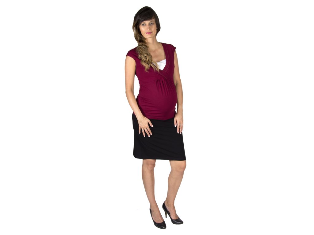 Es hat eine A-Linien-Silhouette mit leicht verlängerter Vorderseite und verlängerten Ärmeln an der Schulternaht. Das Oberteil ist mit einem Stilleinsatz für bequemes Stillen versehen, der untere Teil ist unter der Brust gerafft, um dem wachsenden Bauch Bewegungsfreiheit zu bieten, und hat einen weiteren Saum. Es ist aus sehr angenehmer und kühlender Viskose gefertigt. Viskose ist ein Naturmaterial, das aus Holz gewonnen wird.