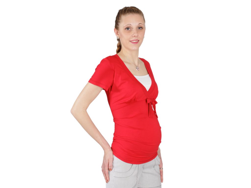 Sehr schönes, bequemes Umstands- und Stillshirt mit weitem Halsausschnitt und Bindeband. Es hat eine A-Linien-Silhouette mit leicht verlängerter Vorderseite und kurzen Ärmeln. Das Oberteil ist im unteren Bereich unterhalb der Brust gerafft und mit einem Stilleinsatz für bequemes Stillen versehen. Es ist aus angenehm luftiger Viskose gefertigt, einem Naturmaterial, das aus Holz gewonnen wird.