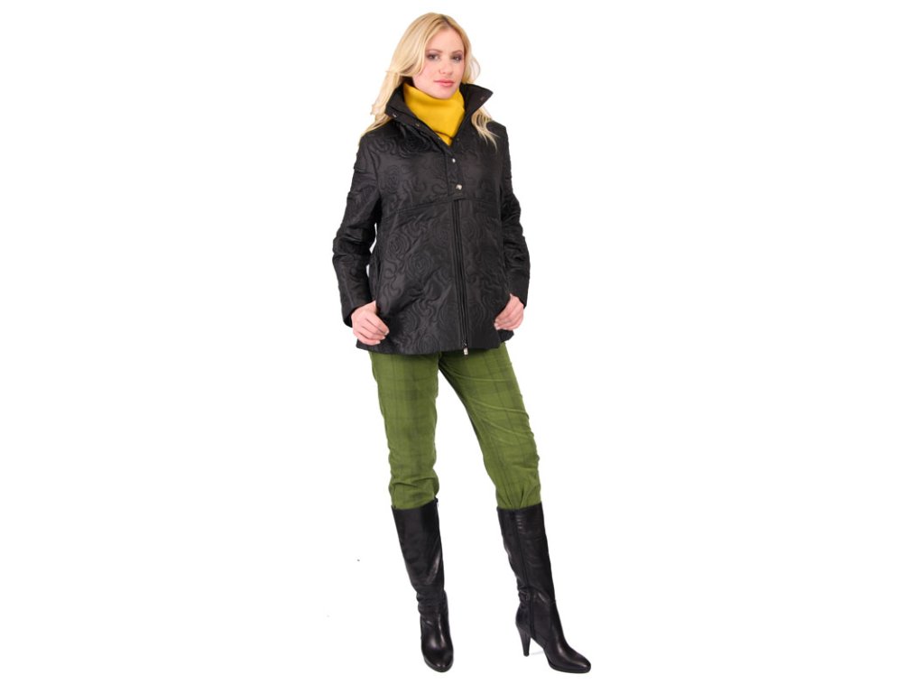 A-Linien-Schnitt mit Stehkragen und Reißverschluss. Im oberen Vorderteil befindet sich eine dekorative Knopfleiste mit Zierknöpfen. Die Vorderteile sind in die Nähte integriert. Das Vorderteil ist unterhalb der Brust ausgeschnitten und mit einer Knopfleiste versehen. Der untere Teil ist durch vertikale Nähte unterteilt, in die die Taschen eingearbeitet sind. Die Unterteilung des Rückenteils setzt sich im Vorderteil fort und ist im unteren Bereich zusätzlich durch zwei vertikale Nähte unterteilt. Lange, doppelt genähte Ärmel.