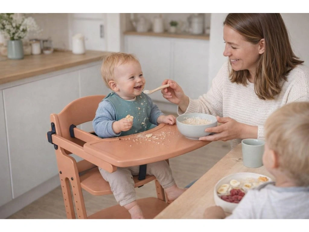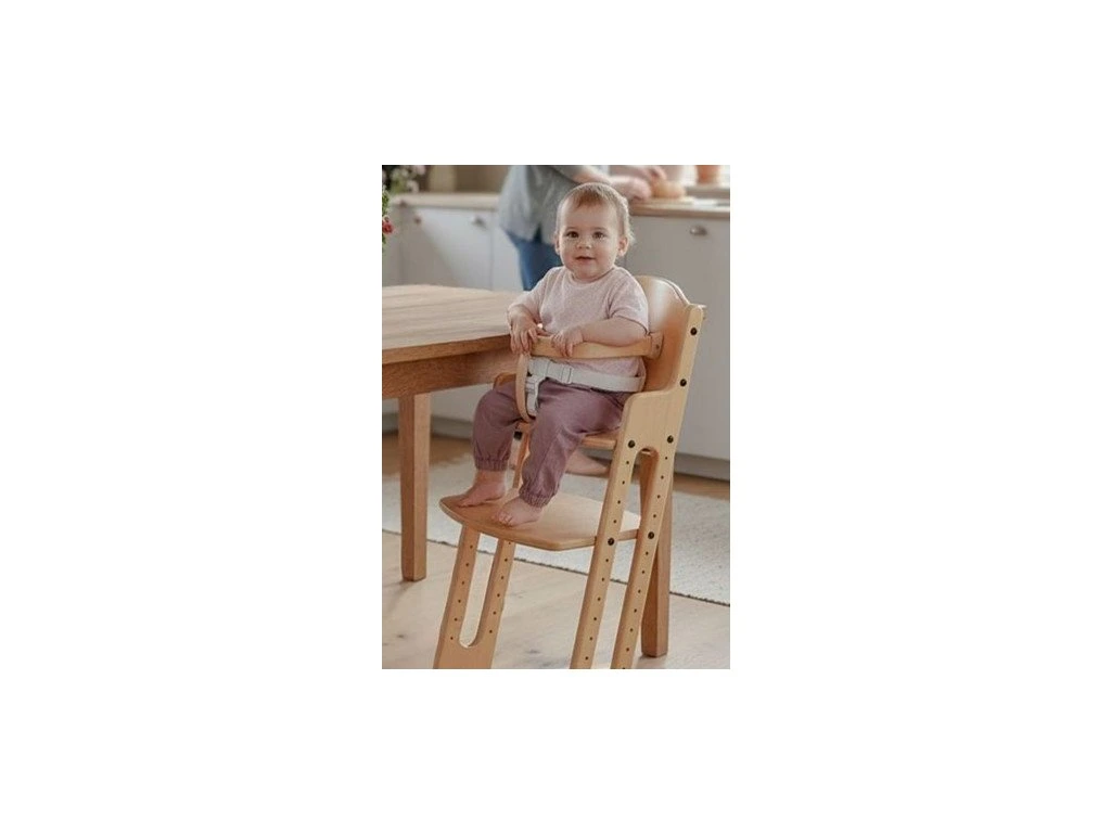 - Ein mitwachsender Holzhochstuhl vom dänischen Unternehmen BabyDan – einem weltweit führenden Hersteller von Sicherheitsprodukten für Kinder.